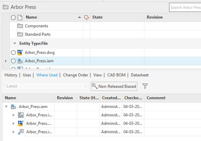 También tenemos la trazabilidad de los archivos y diseños que estamos trabajando, cada cambio importante que realizamos queda guardado y accesible para su posterior consulta o uso. Saber en qué diseños y planos se está utilizando nuestra pieza, o cómo está compuesto nuestro ensamblaje. Conocer además en qué fecha se realizaron los cambios y por quién.
